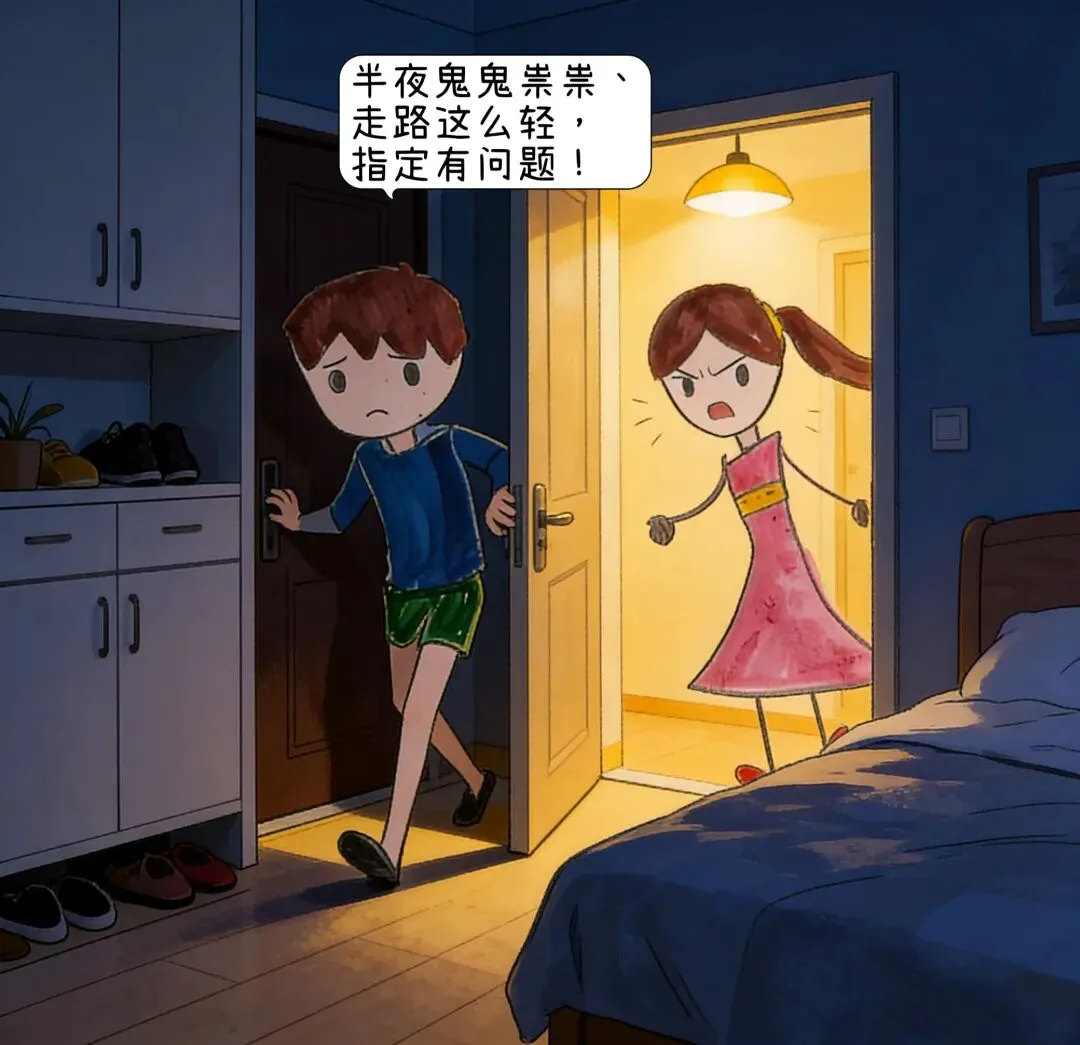 老婆:半夜鬼鬼祟祟、走路这么轻,指定有问题!