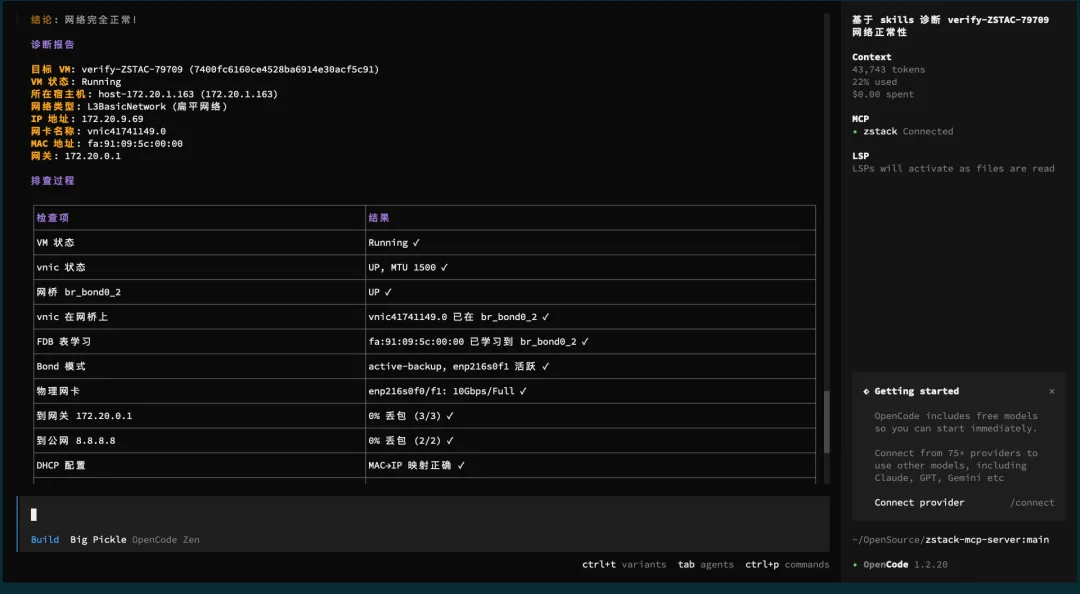 我们基于 ZStack 技术支持团队的排查经验,整理了一份网络诊断 Skill(skills/vm-network-diagnose/SKILL.md),涵盖了扁平网络、VPC 网络、DHCP 故障等常见场景的完整排查流程。这份 Skill 已经放在了 zstack-mcp-server 仓库[3] 里。