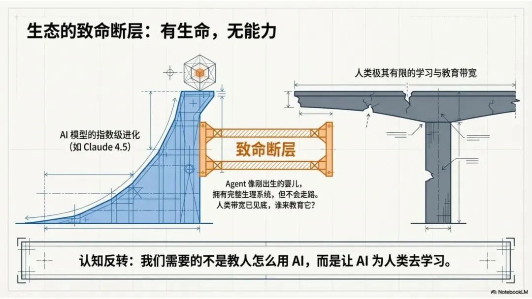 但这个答案有一个致命的缺陷:人类的时间有限,人类的学习带宽,已经跟不上 AI 的进化速度。
