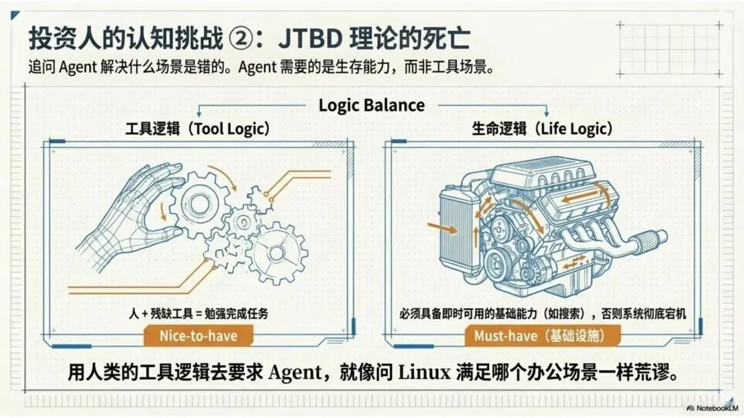 传统的 JTBD 框架问:“用户雇佣这个产品来完成什么任务?”但当用户从“人”变成“Agent”时,这个问题就错了。