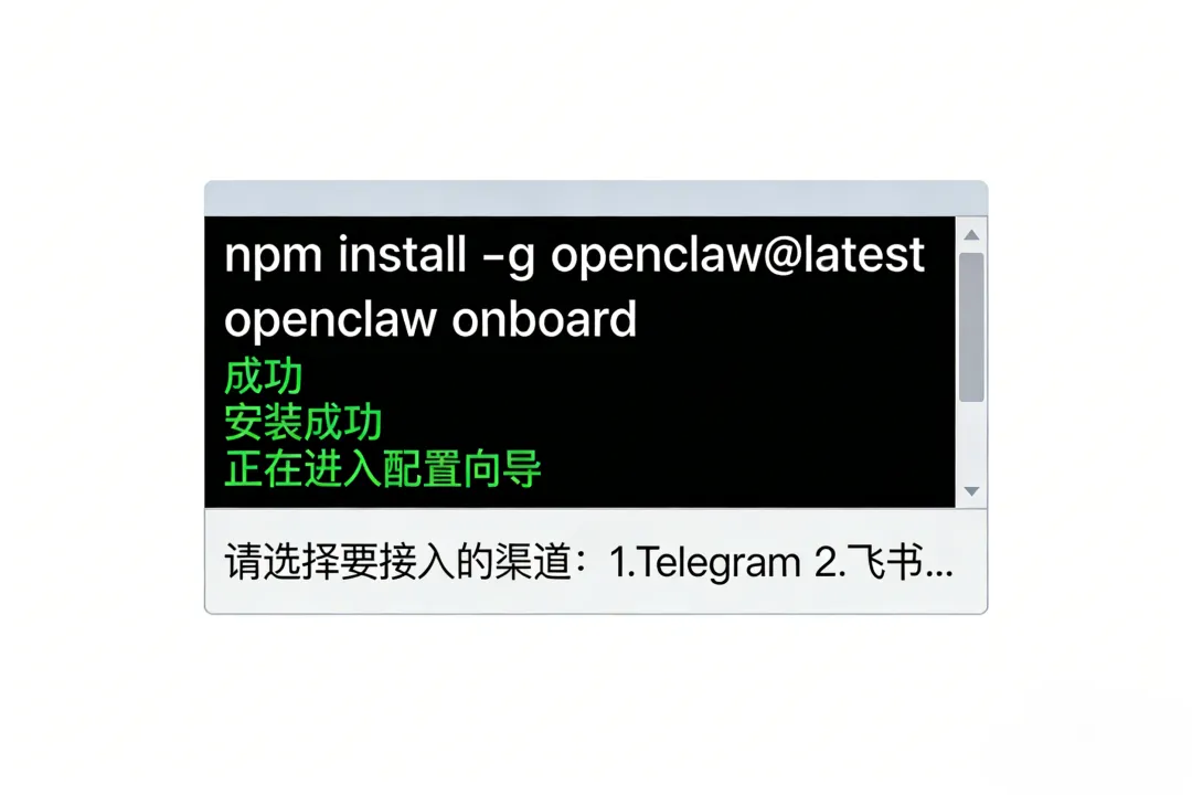 以 OpenClaw 为例,你只需要一行命令就能完成安装: