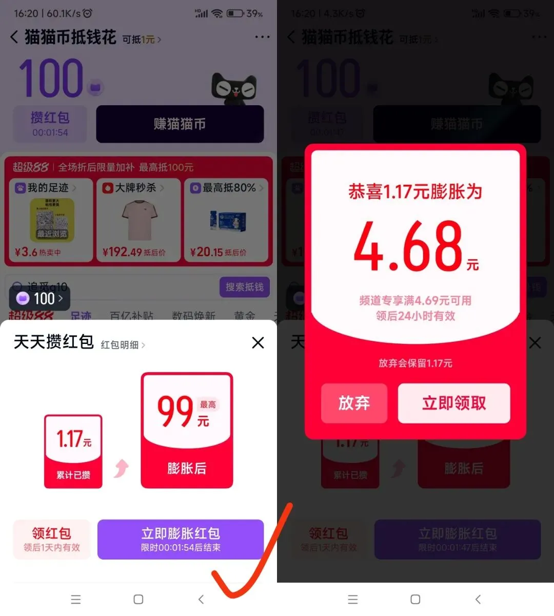 天猫app4/6块红包