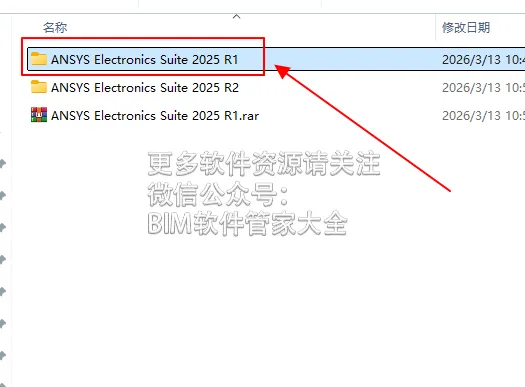 2、鼠标左键双击打开解压好的【ANSYS Electronics 2025 R1】文件夹。