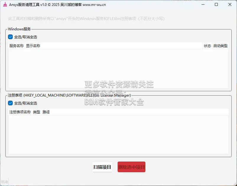 22、如果之前有安装了旧版本的Ansys授权管理服务,点击“开始“菜单栏,点击展开“Ansys PLE Licensing 2025 R1“,点击打开“Ansys服务清理工具“,可以使用这个工具卸载清理授权管理服务,没有则忽略