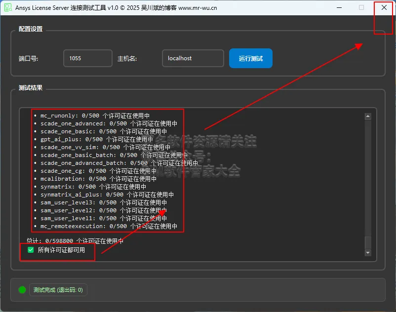 29、提示“所有许可证都可用”表示正常, 点击右上角的 “X “关闭