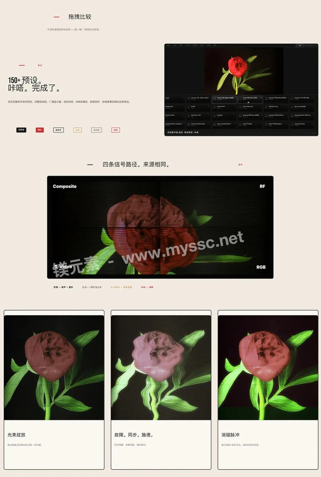 告别静态叠加层。CRTX 将图像视为动态信号,因此高光会呼吸,色彩会晕染,并且可以根据需要添加同步撕裂效果。最终效果宛如从 CRT 显示器拍摄而成,而非从预设中拖拽而来。