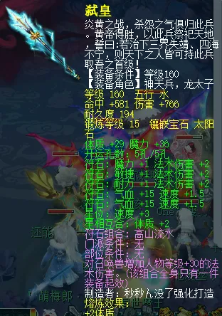 伤害上打上了15级得太阳石后,直接到了766点,仅仅就算这把武器得伤害就能为玩家提供了191.5点得法术伤害了,这还是不计算下排得附加属性情况下,所以法系不仅项链重要,武器同样也很关键。