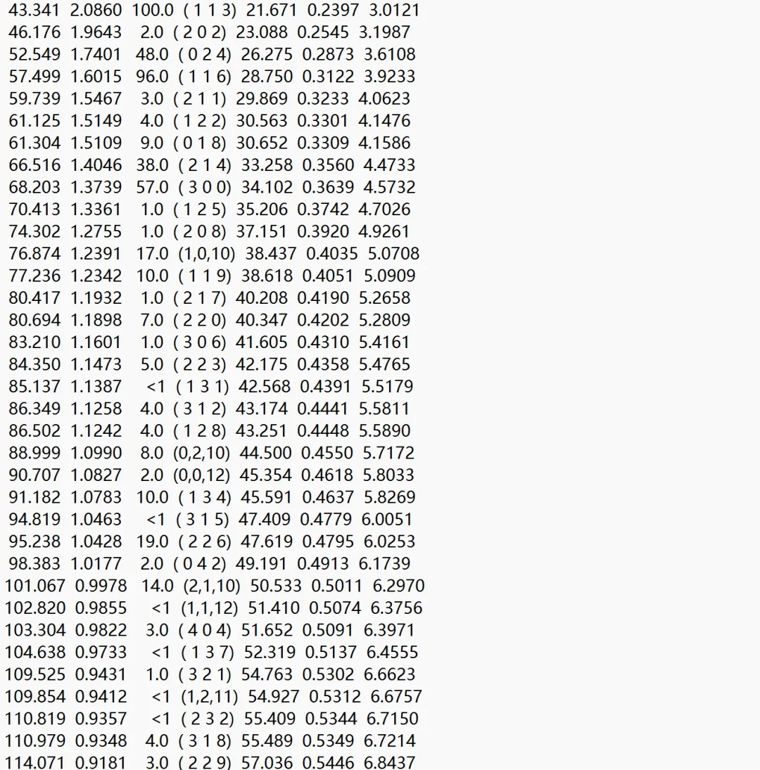 59.739 1.5467 3.0 ( 2 1 1) 29.869 0.3233 4.0623
