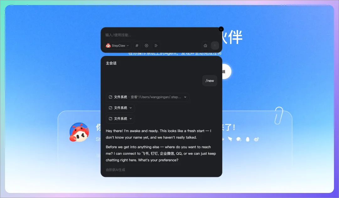 这是 StepClaw 区别于其他”龙虾”的一个关键功能。
