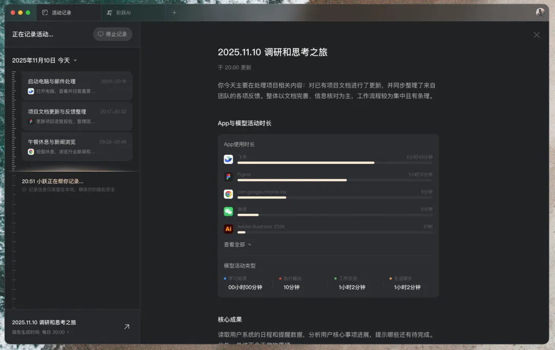 比如自动进行每日复盘等,StepClaw 会生成一份报告。