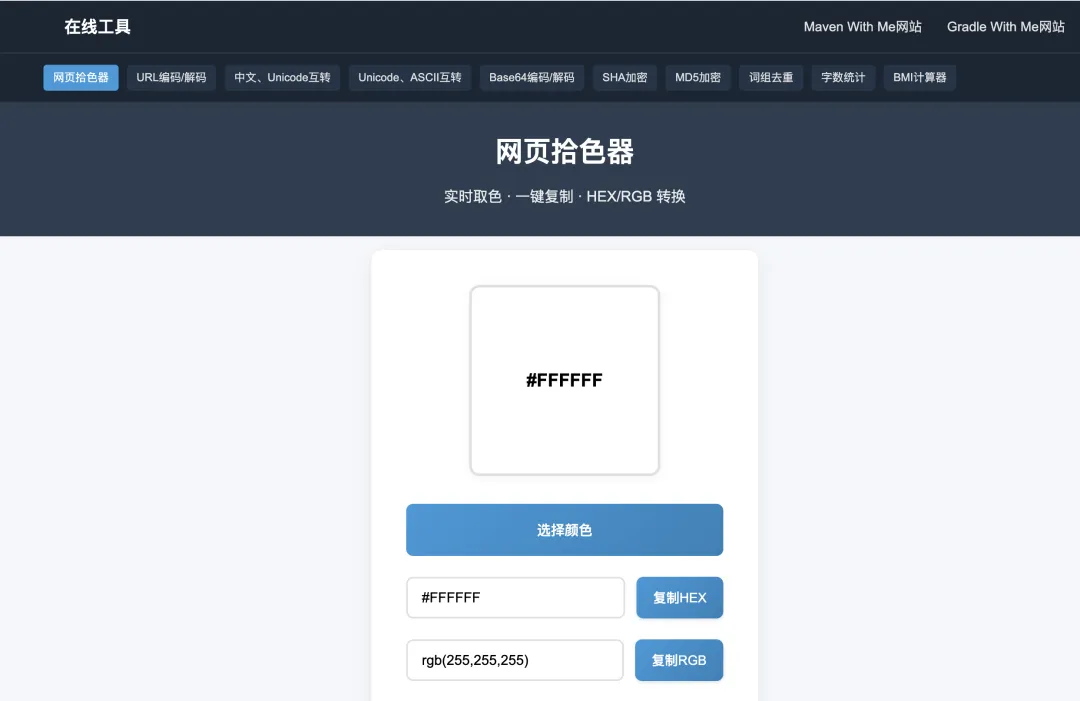 实时取色 · 一键复制 · HEX/RGB 转换