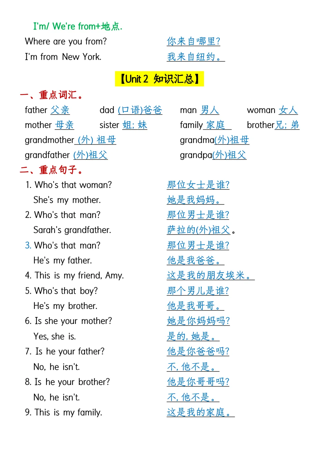 条理清晰好背诵,基础抓牢不丢分,家长辅导超省心,可直接打印打卡~