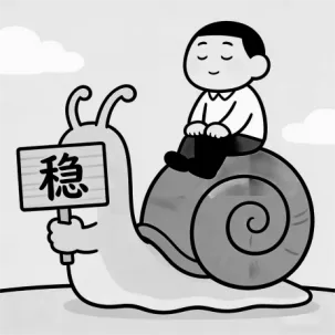 漫画:一个人坐在蜗牛上面,蜗牛手里拿着一个“稳”字,请以“稳”为话题做一个简短演说。