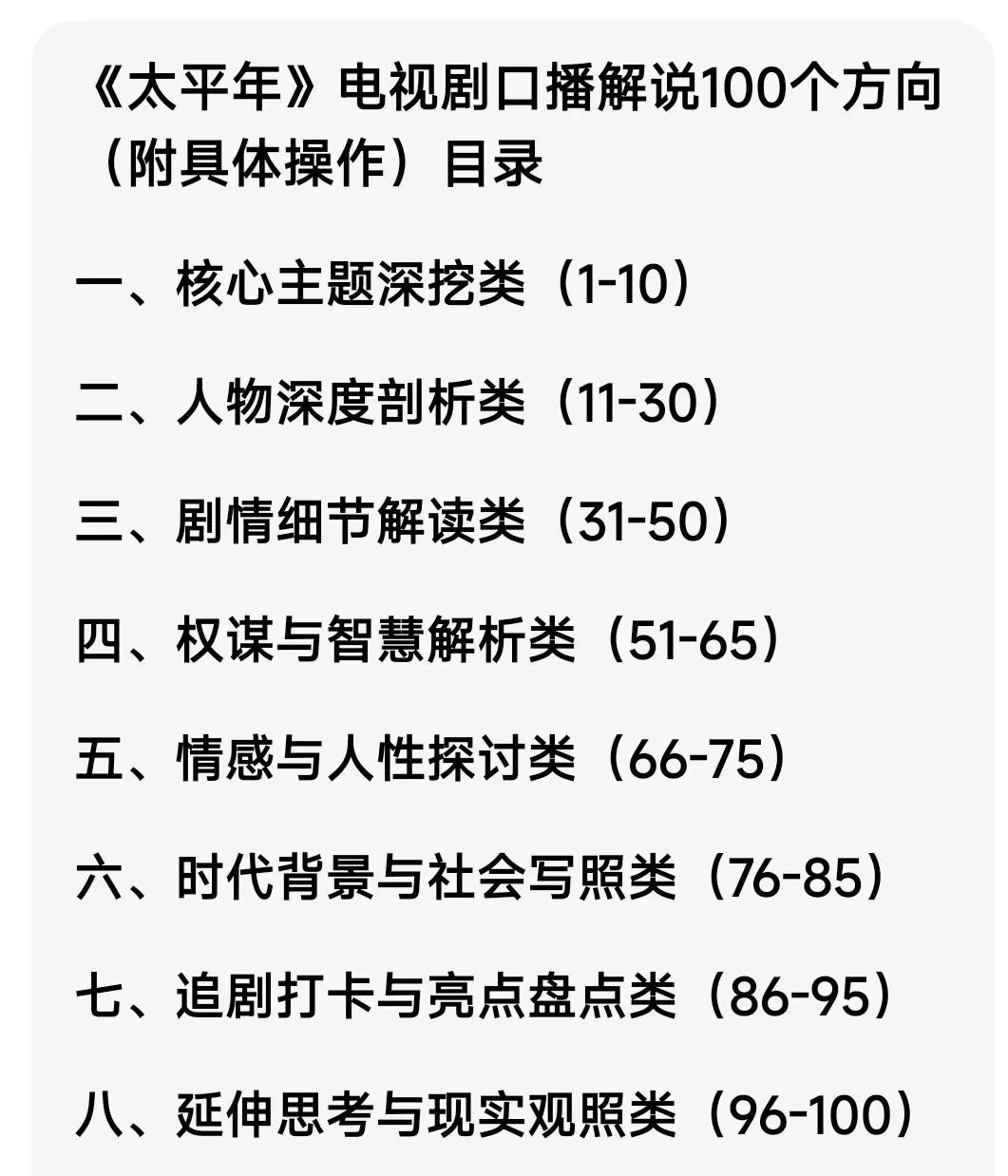 可下载|《太平年》电视剧口播解说 100 个方向(附具体操作!)|附PDF