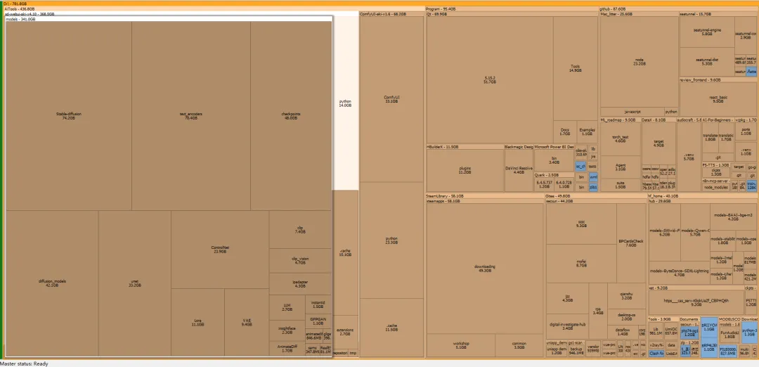 C盘D盘都红了,赶紧找个工具看看我的电脑到底是什么占用了这么多空间。SpaceSniffer 是一款主打可视化磁盘空间分析的 Windows 专属工具,核心特点围绕直观、轻量、高效、安全展开,同时兼具强大的自定义和交互能力,个人用户清理磁盘的首选工具。果然是我的模型文件,个人想跑大模型成本实在太高了,5070的显卡推理不够用,下载模型到本地也要考虑自己存储空间的问题。SpaceSniffer可以实时交互,点击文件夹进行下钻就可以看到子文件夹的占用大小,右键文件夹磁块出来的就是系统右键菜单,方便操作。下载地址: