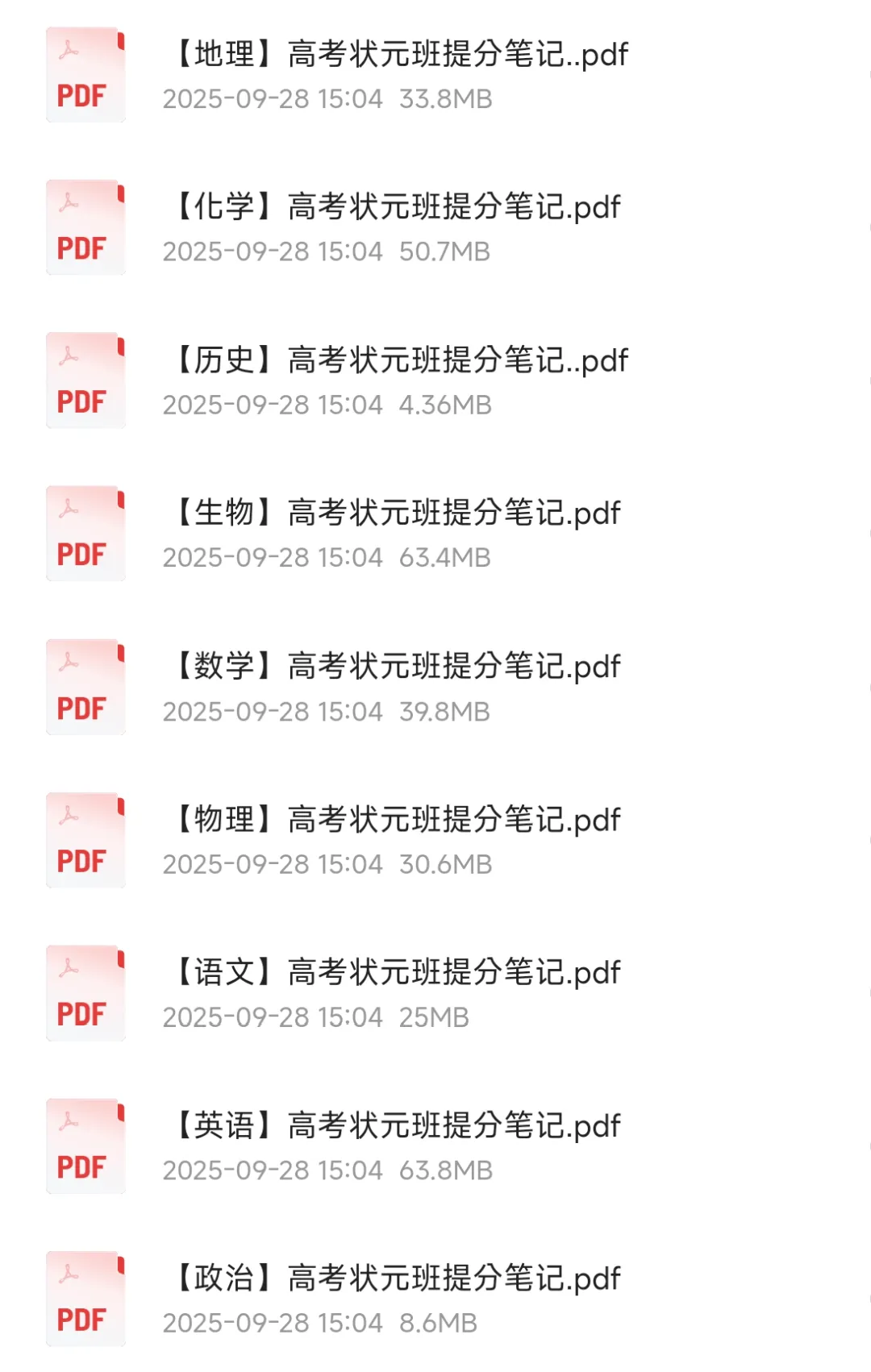 【免费下载附链接】高考状元班提分笔记合集