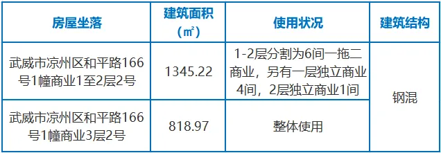 标的名称:武威市凉州区和平路166号1幢1至3层2号商业房产