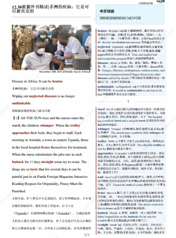 核心主题:2024年,非洲多个国家在疾病防控上取得重大突破,打破“非洲疾病难以攻克”的固有认知,传递希望与力量,文章难度适中,充满正能量,适合入门者培养精读兴趣。
