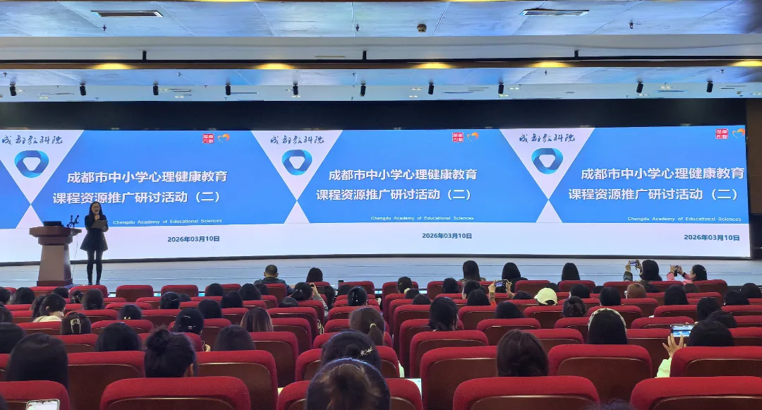 3月10日,成都市中小学心理健康教育课程资源推广研讨活动(二)在成都市教科院学术交流中心顺利举行,旨在贯彻教育部2026年《关于全面推进健康学校建设的指导意见》、教育部等十七部门《全面加强和改进新时代学生心理健康工作专项行动计划(2023-2025年)》等文件精神,践行“健康第一”教育理念,落实成都市教育局《关于推广新一批中小学心理健康课程资源的通知》要求,推动优质心育课程资源全域落地、普惠共享。