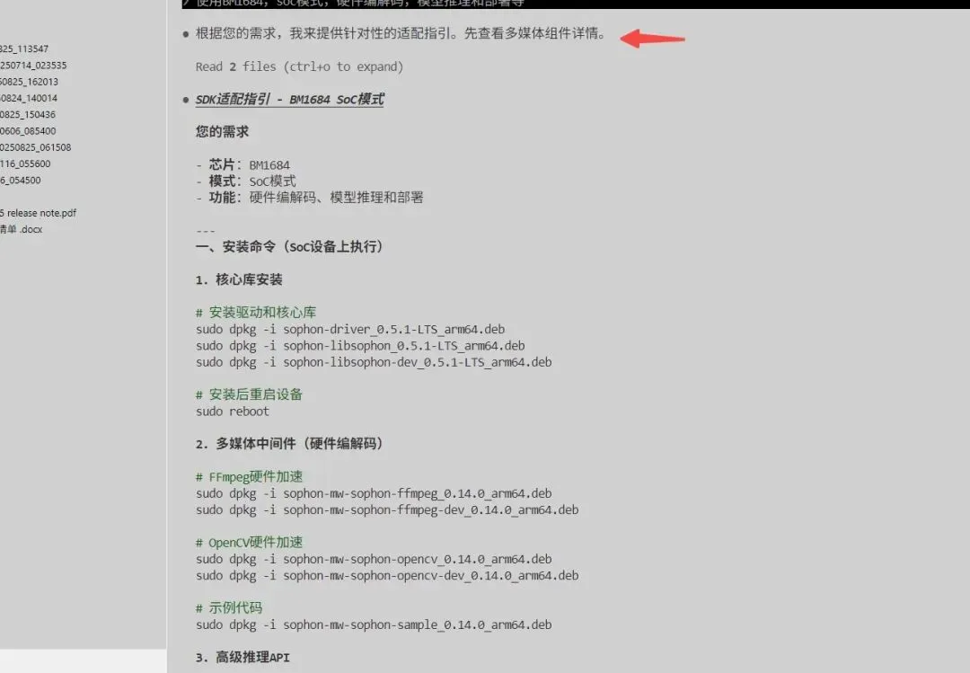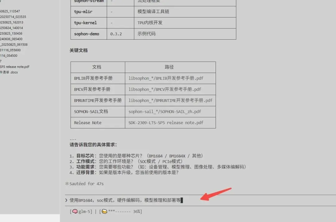 基于成本、性能等方面考虑,公司要更换AI推理芯片及相应的硬件平台,现有的业务逻辑功能要迁移适配到新硬件平台上。在刚开始对接阶段,可能供应商的技术支持并不到位,基本只有SDK开发包。解压一看,几十个文件夹、上百个PDF文档、各种版本的安装包……你开始在文档海洋中挣扎:哪个文档是设备管理的?模型编译用什么工具?我的芯片型号是BM1684X,这些命令适用吗?PCIe模式和SoC模式有什么区别?