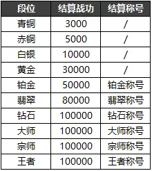 结算时将根据角色荣誉段位发放赛季段位结算奖励,奖励内容如下: