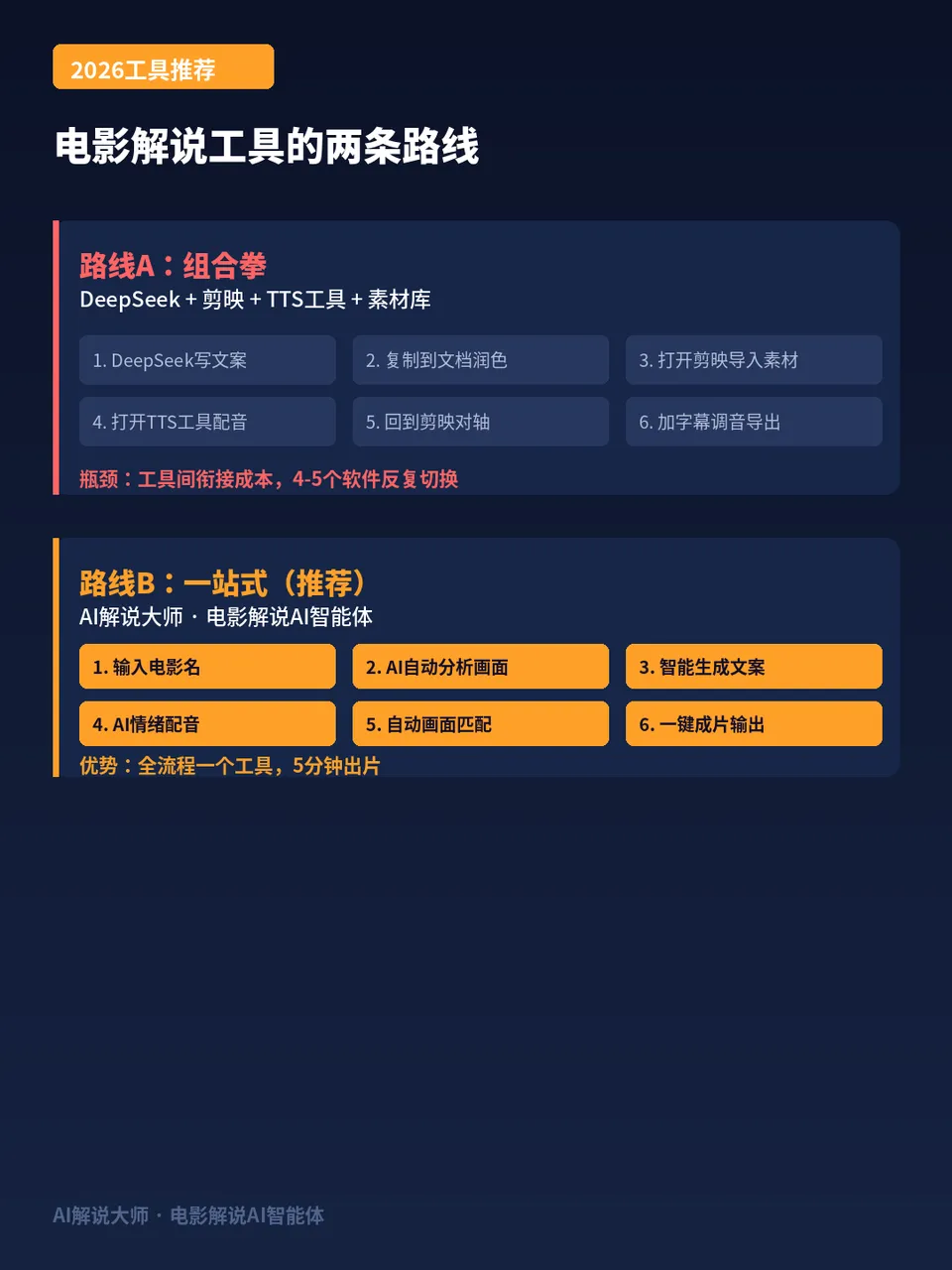 做电影解说这行到2026年,工具选择其实已经分化成了两条路线。