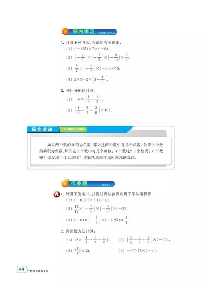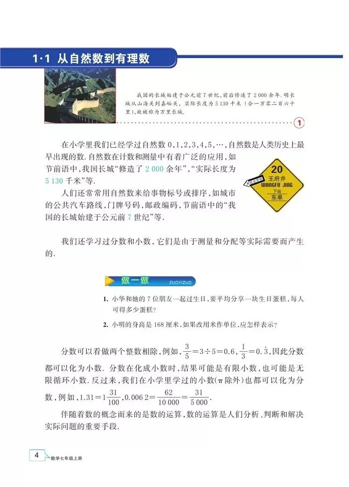 浙教版七年级数学(上册)教材高清电子版