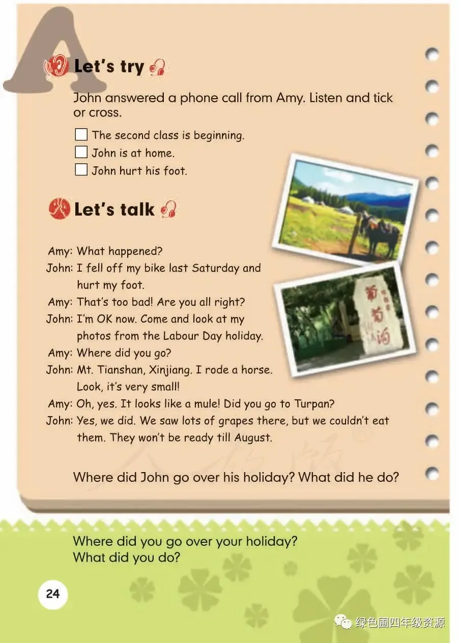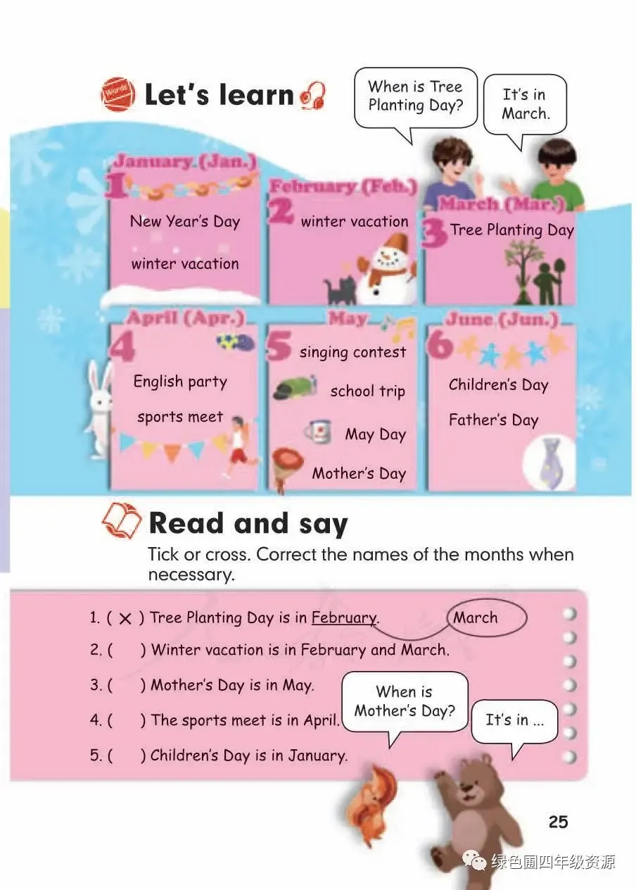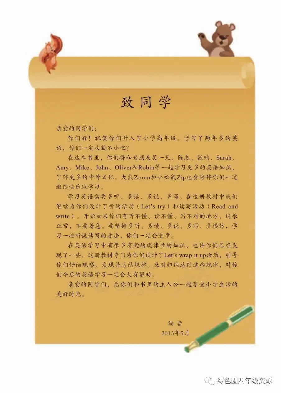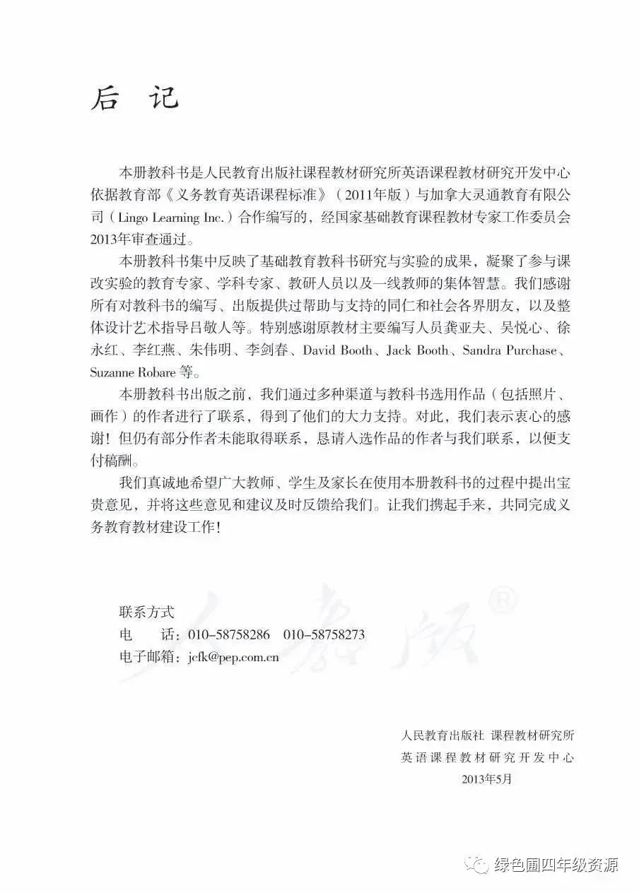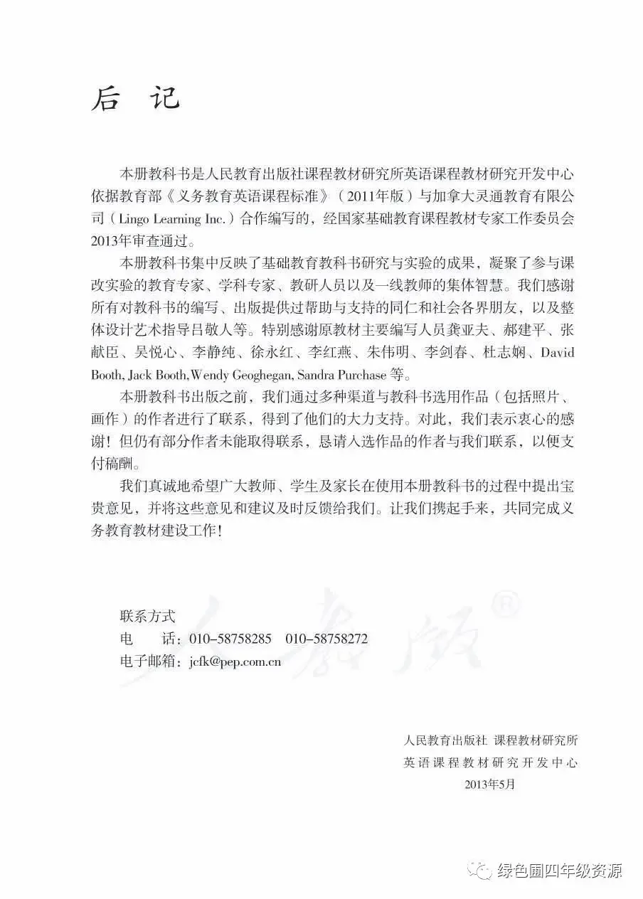 人教PEP部编版五年级英语下册电子课本教材高清图片