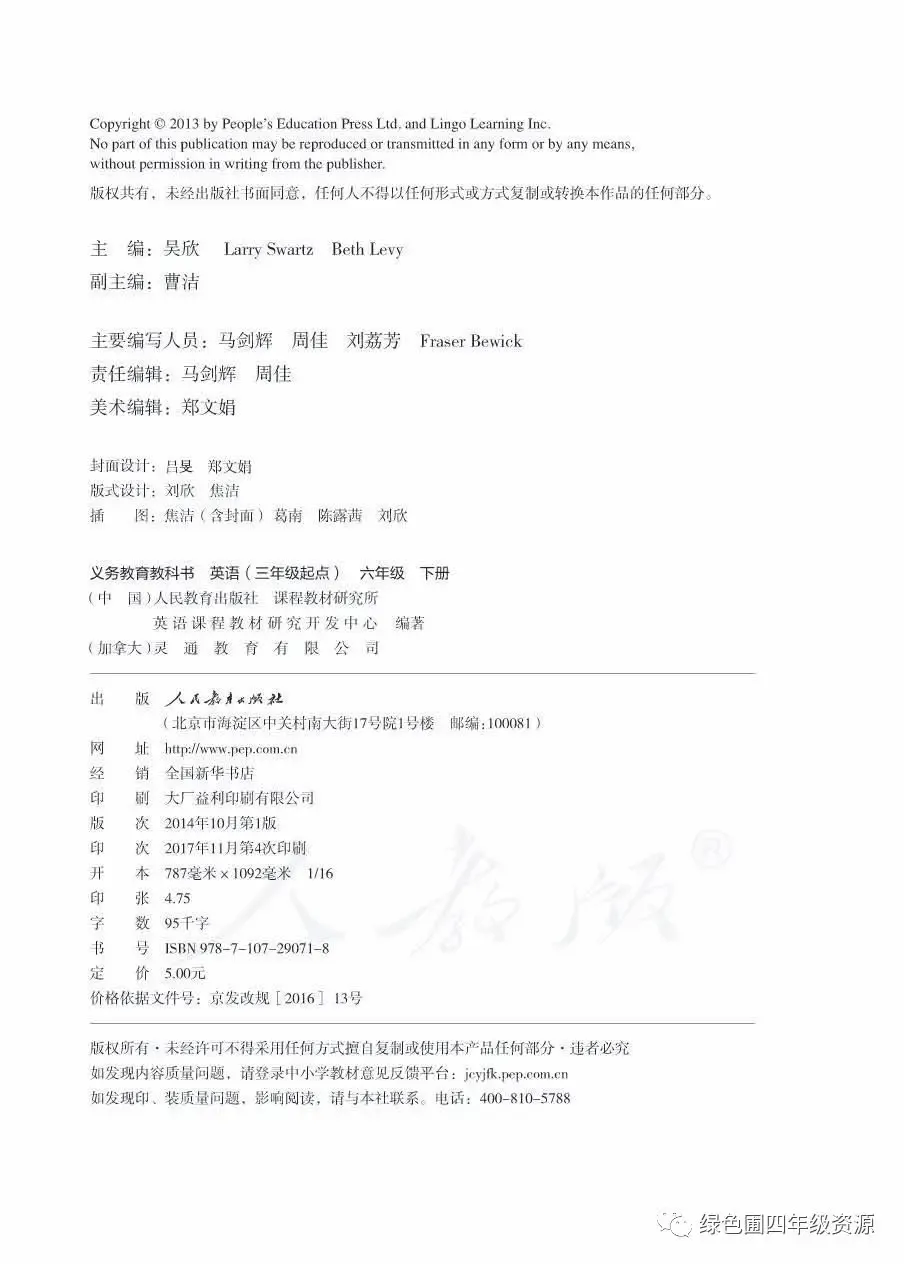 人教PEP部编版六年级英语下册电子课本教材高清图片