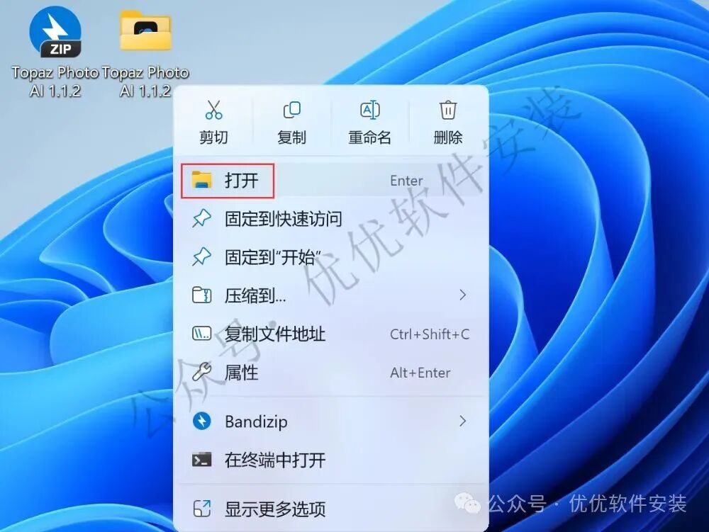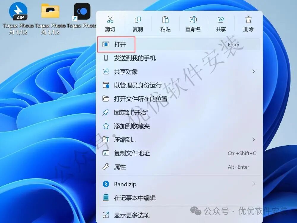 16、回到桌面,右键桌面上的【Topaz Gigapixel AI软件图标】,点击【打开】