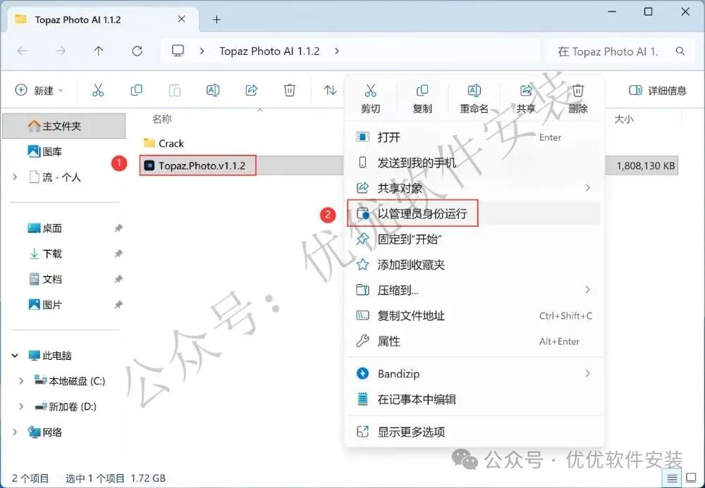1、下载Topaz Photo AI 1.1.2软件安装包到电脑上,右键选择【解压到Topaz Photo AI 1.1.2\】