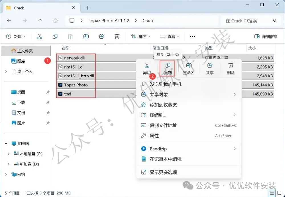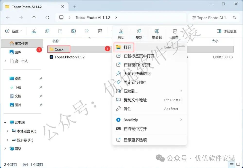 11、回到Topaz Photo AI 1.1.2文件夹,找到【Crack】文件夹,右键【打开】它