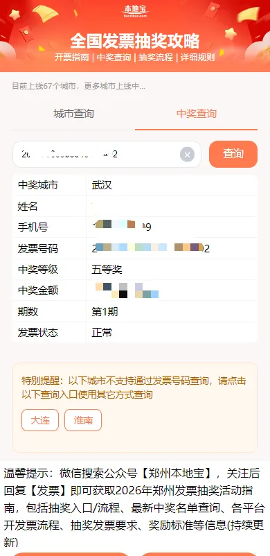 全新升级!烟台发票抽奖工具支持城市直达+全国中奖一键通查!