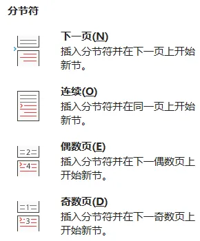 这是日常办公里使用率最高的分节符。插入后,分节符后面的内容,会直接从新的一页开始,相当于分节符和分页符的结合体。