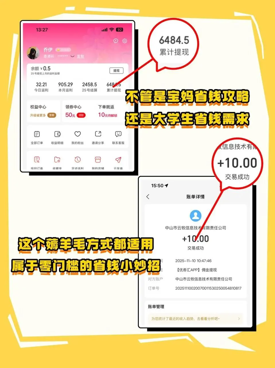 存钱小技巧,优券汇返利让我一年多攒6000+