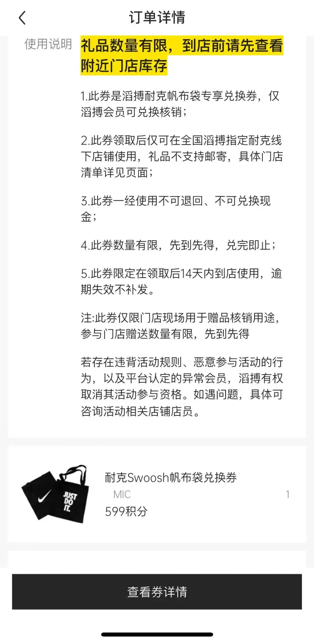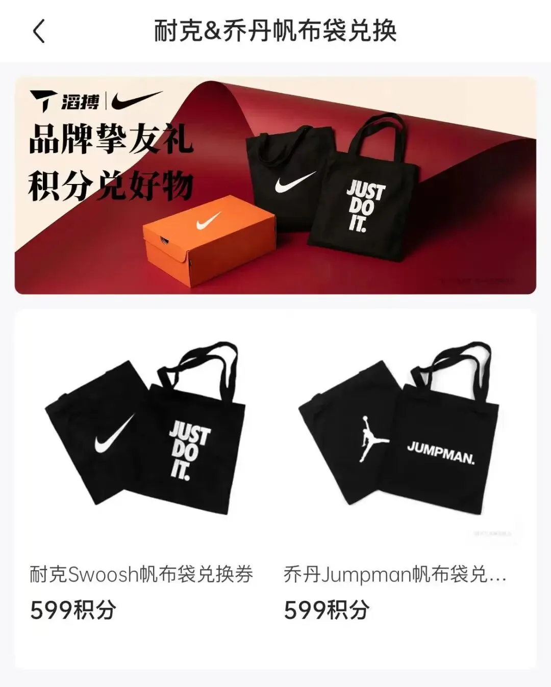 滔搏 App 积分换Nike/Jordan的帆布包,看看你有多少积分
