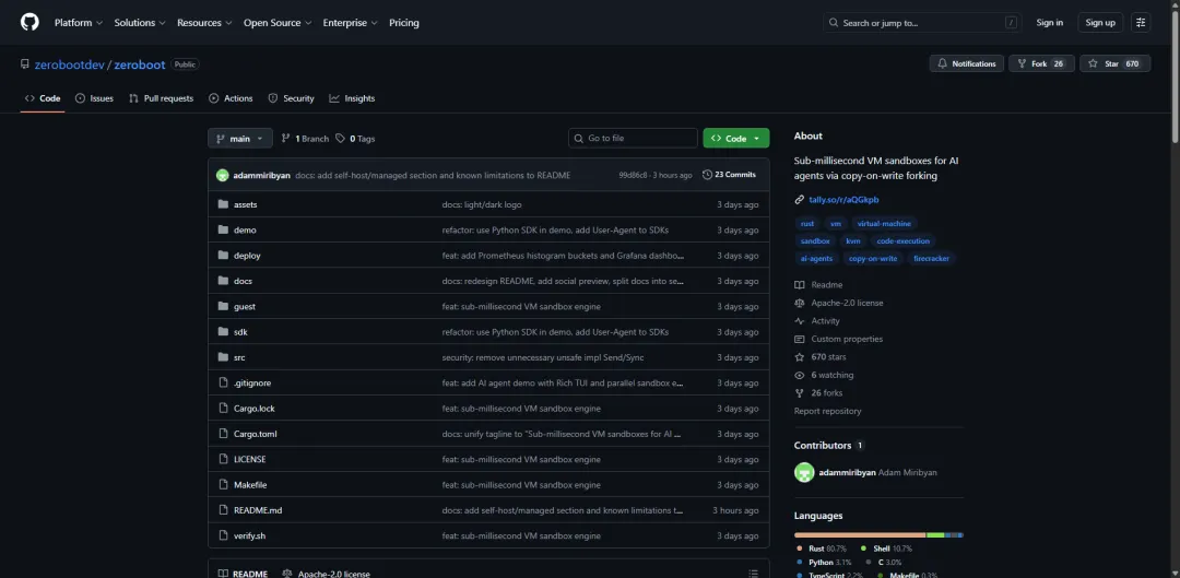 9.Zeroboot:利用写时复制技术实现亚毫秒级虚拟机沙箱启动 (Show HN: Sub-millisecond VM sandboxes using CoW memory forking)