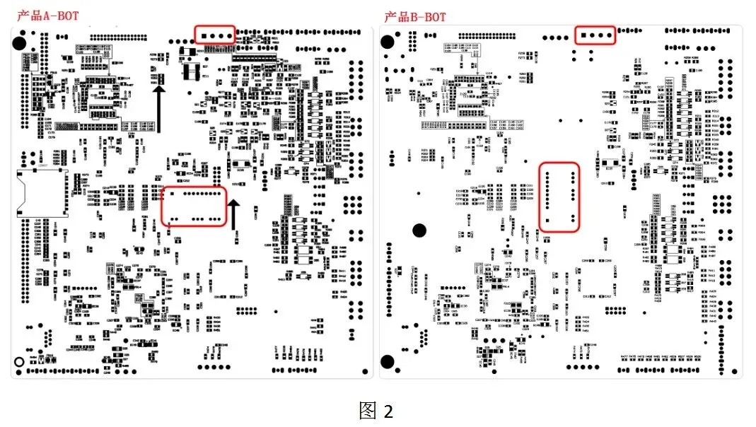 两板布局相似度极高,而插件布局除红色标记器件外,其它插件布局完全一致。