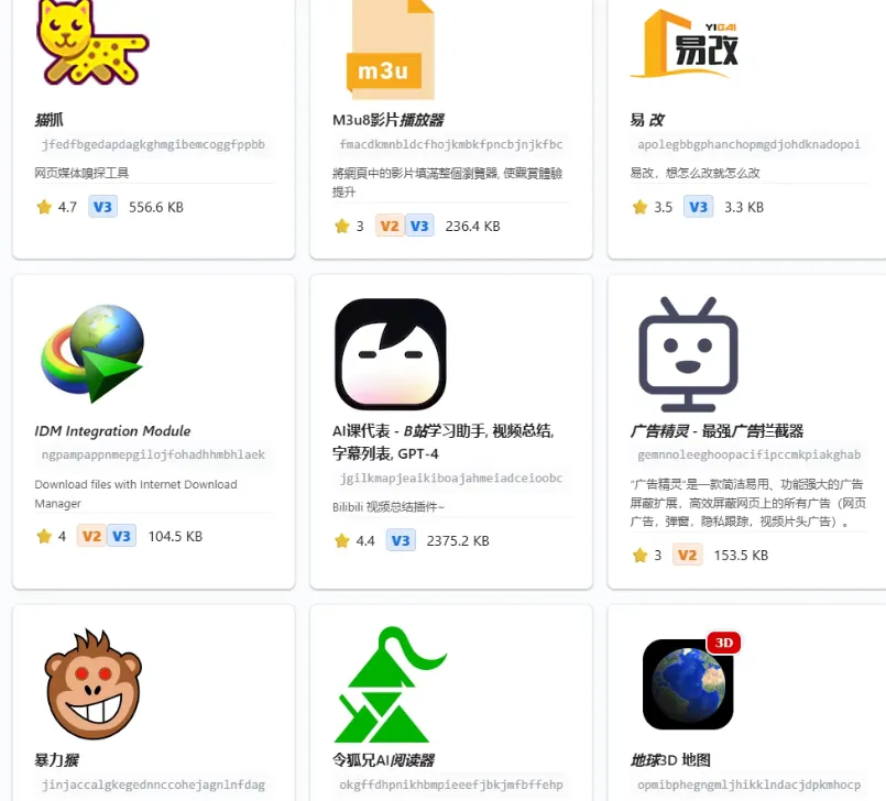 打开首页,界面清爽,没有弹窗广告,没有“高速下载”的套路按钮。直接搜索你想要的插件,点进去,顶部就有下载按钮,一键下载 .crx 或 .zip 文件。全程无需注册、无需登录、不跳转、不诱导,纯粹得不像这个时代的网站。