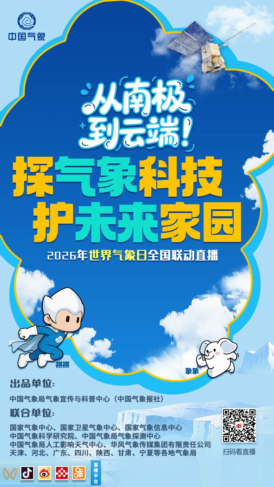 3月21日,在“象象”直播间,我们将跟随镜头一起探访极地,在冰川之上捕捉地球呼吸的脉搏;走进田野,看气象科技守护农业生产沃野新绿;登临高山,驻守云端感受观测的坚守与力量。还能沉浸式感受“科普嘉年华”的点滴精彩……当然,本次直播活动还有主播精心准备的宠粉礼物等你来拿!更多精彩,让我们一起携手了解气象科技的奥秘。