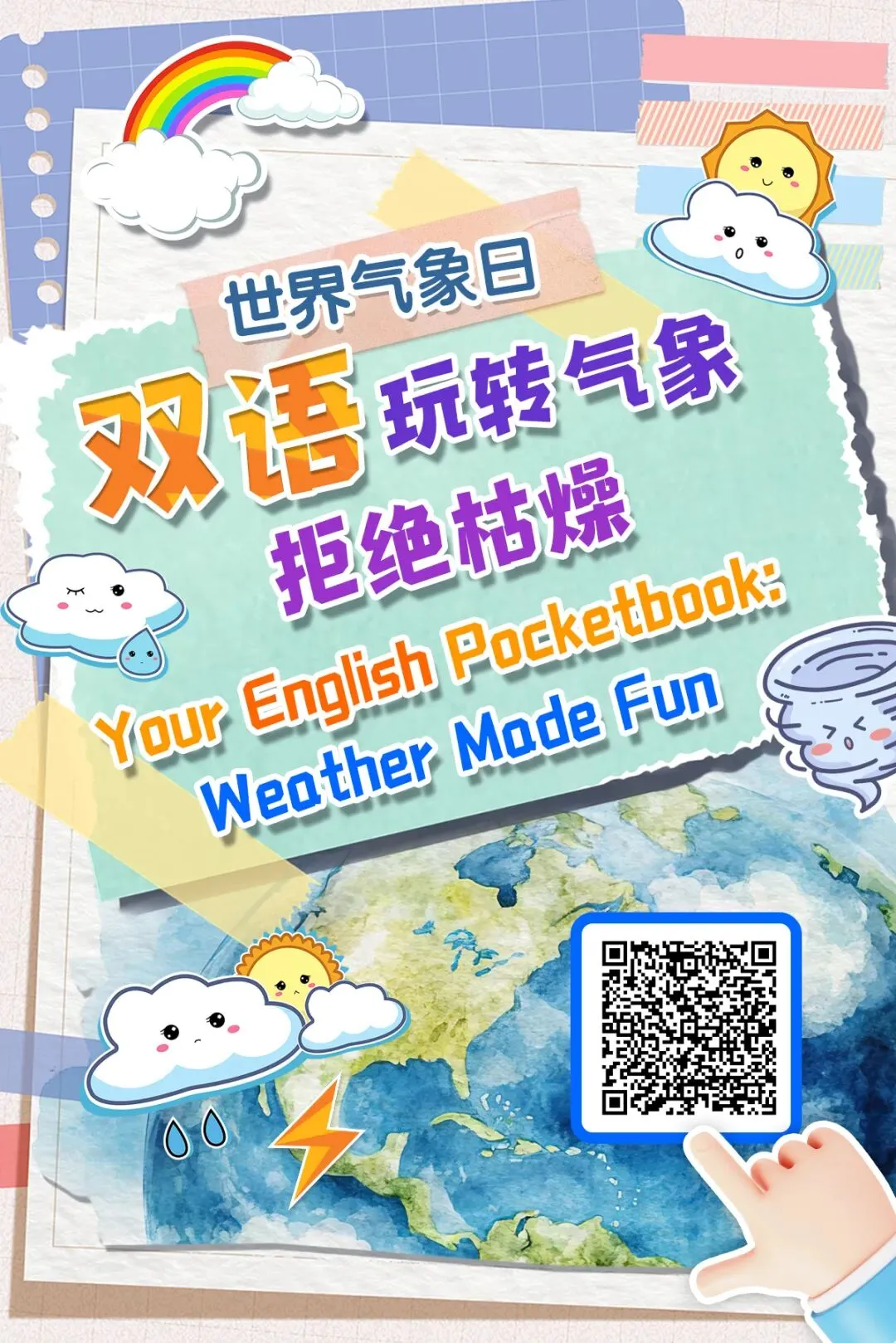 2026年世界气象日双语手卡以“测今日气象,护明日家园”为主线,将彩虹、雷暴等天气现象科普与中英双语巧妙融合,融入趣味双语彩蛋,串联古今气象英文谚语与历年世界气象日主题回顾,带你轻松玩转气象知识、感受双语魅力。
