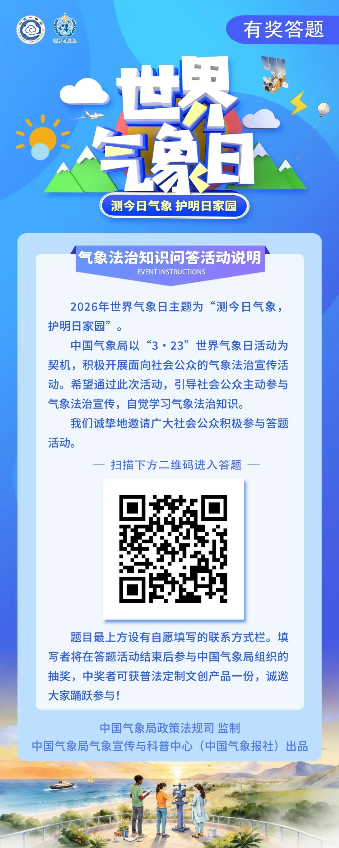 小e气象有奖知识竞答平台联合科普公园公众号平台,面向全国用户推出2026年世界气象日专题赛!无论你是气象爱好者,还是渴望探索自然奥秘的“好奇宝宝”,这里都有属于你的舞台!