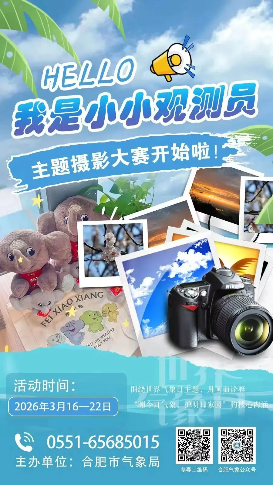 2026年世界气象日,合肥市气象局开展“我是小小观测员”主题摄影大赛活动。春风拂过江淮大地,风云勾勒天际轮廓。每一次气温起伏、每一场雨雪阴晴、每一片云海霞光,都藏着地球最真实的呼吸,也关联着生态家园的未来。欢迎每一位参与者用画面诠释“测今日气象,护明日家园”的核心内涵。
