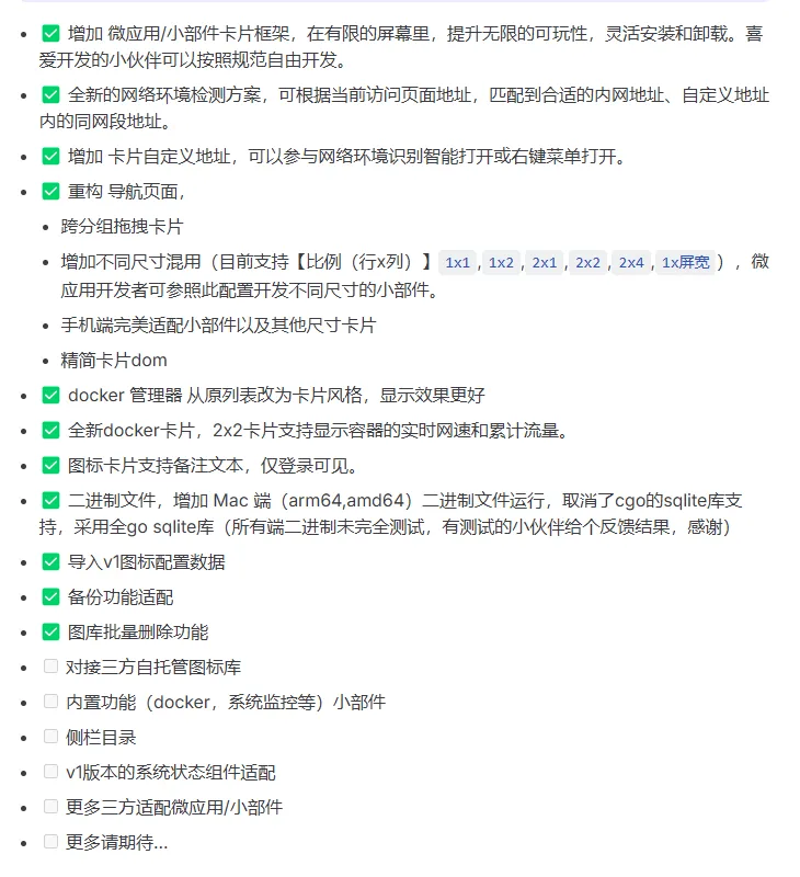 1.为了更快的发布v2正式版本,邀请更多小伙伴加入体验新版功能,特此部分开发版本(暂不含v2测试版本),仅在开发版本登录上 Sun-Panel服务平台的账号,即可免费使用 PRO 功能,使用高级功能。2. 开发版本(DEV)测试期间,参与测试的小伙伴如果能提出有效的BUG(首次提出),待正式版发布后,会公示名单,根据有效数量可以打折(8折/5折)购买永久PRO授权。