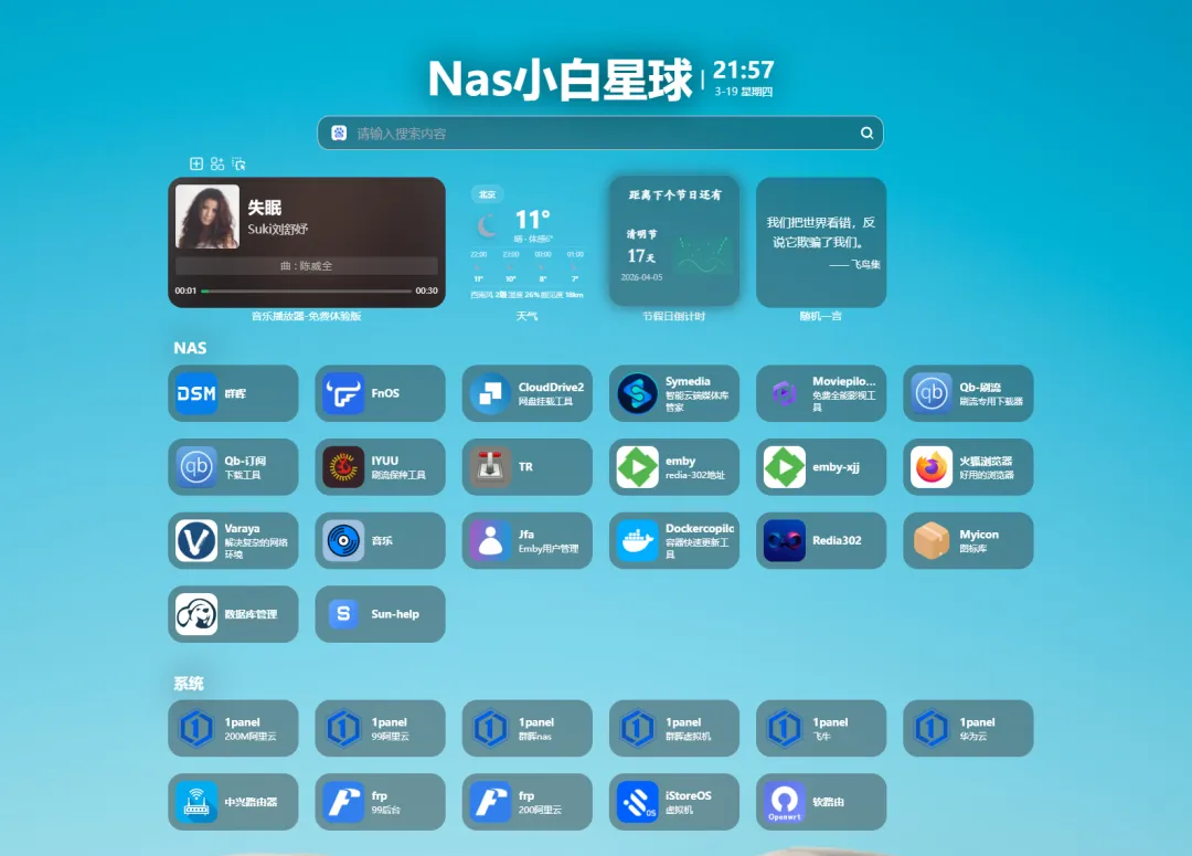 不管是NAS插件、服务器地址,还是常用办公链接、家庭影音入口,你都可以把它们添加到Sun-Panel面板上,变成一个个清晰的图标。从此告别记网址、翻收藏夹的麻烦,打开面板,所有需要的入口一键点击就能直达,就像操作手机桌面一样简单。