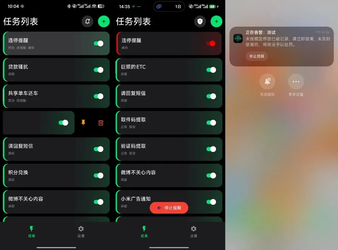 自定义任务,强大灵活高效。违停监控、挪车提醒、红包监控,营销骚扰一键屏蔽,你的通知你来掌控。