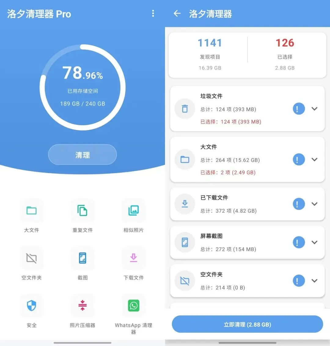 这是一款非常简洁好用的手机垃圾清理器,无广告安装即用。可帮助你查找并删除不必要的文件,从而释放存储空间,包括但不限于:垃圾清理、重复文件查找清理、相似照片查找清理、大文件、软件安装包查找清理、应用安全扫描等等…