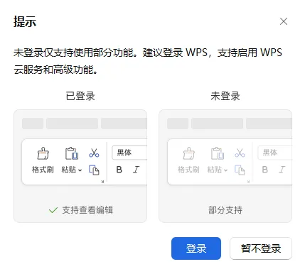 WPS 不登录账号会有不少功能限制,可很多朋友平时只做本地文档,根本用不上云文档,也没必要登录。今天就给大家分享一款 WPS 免登录工具~