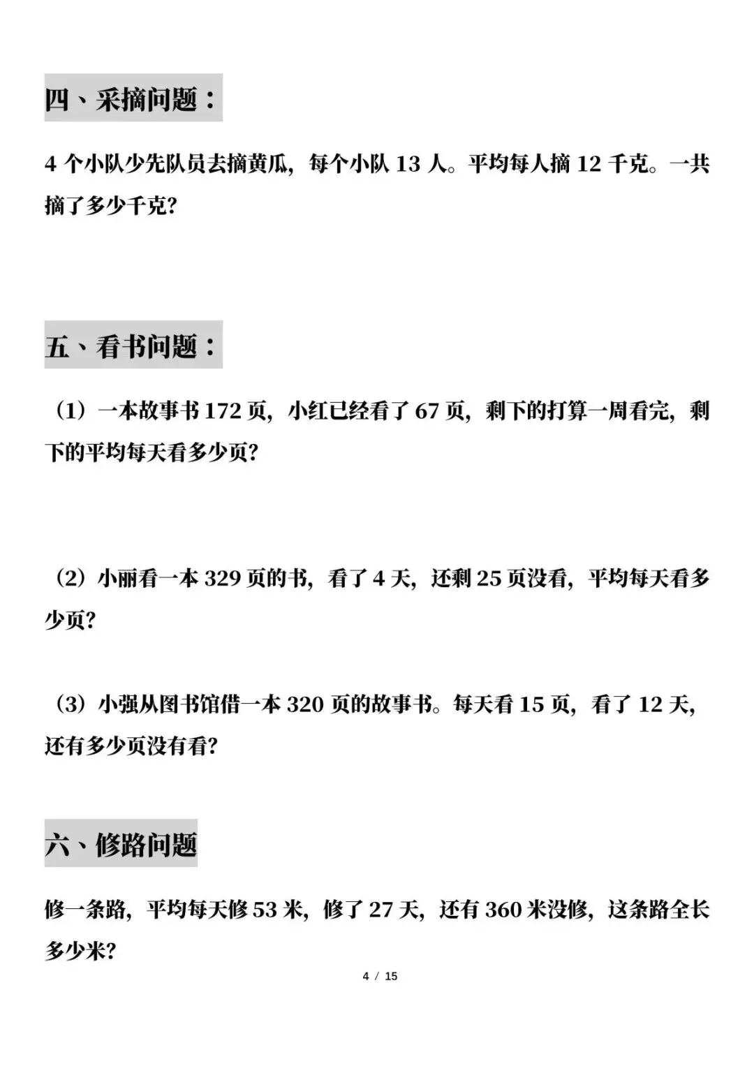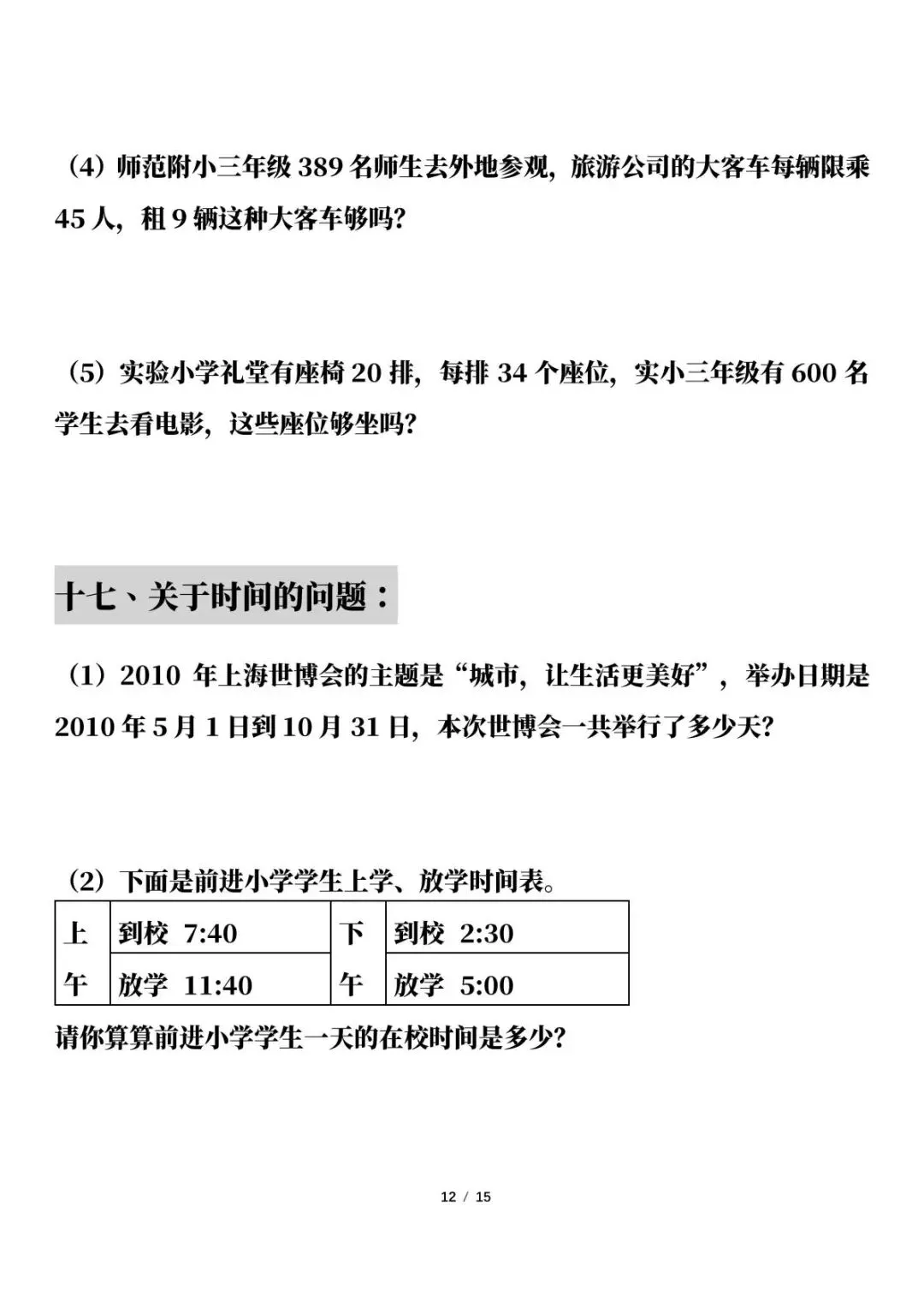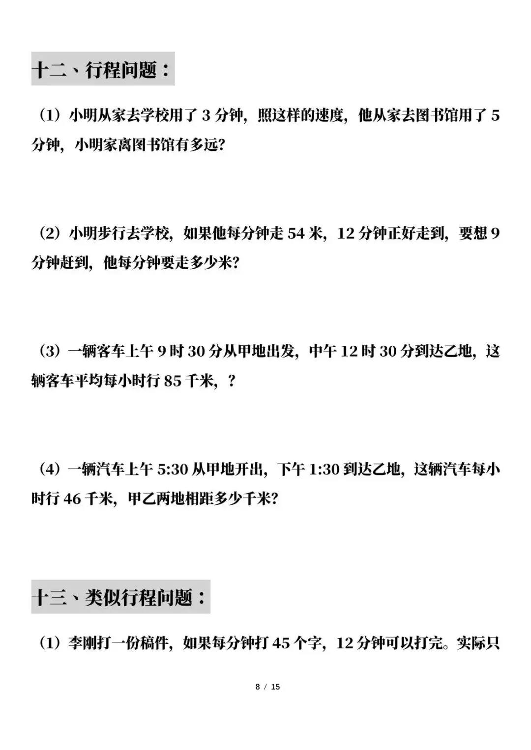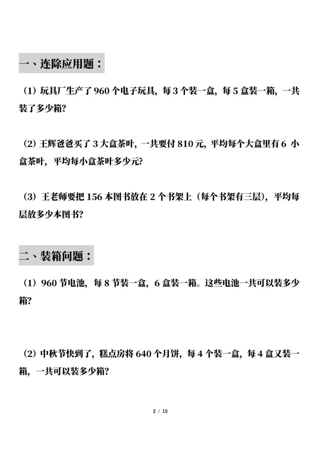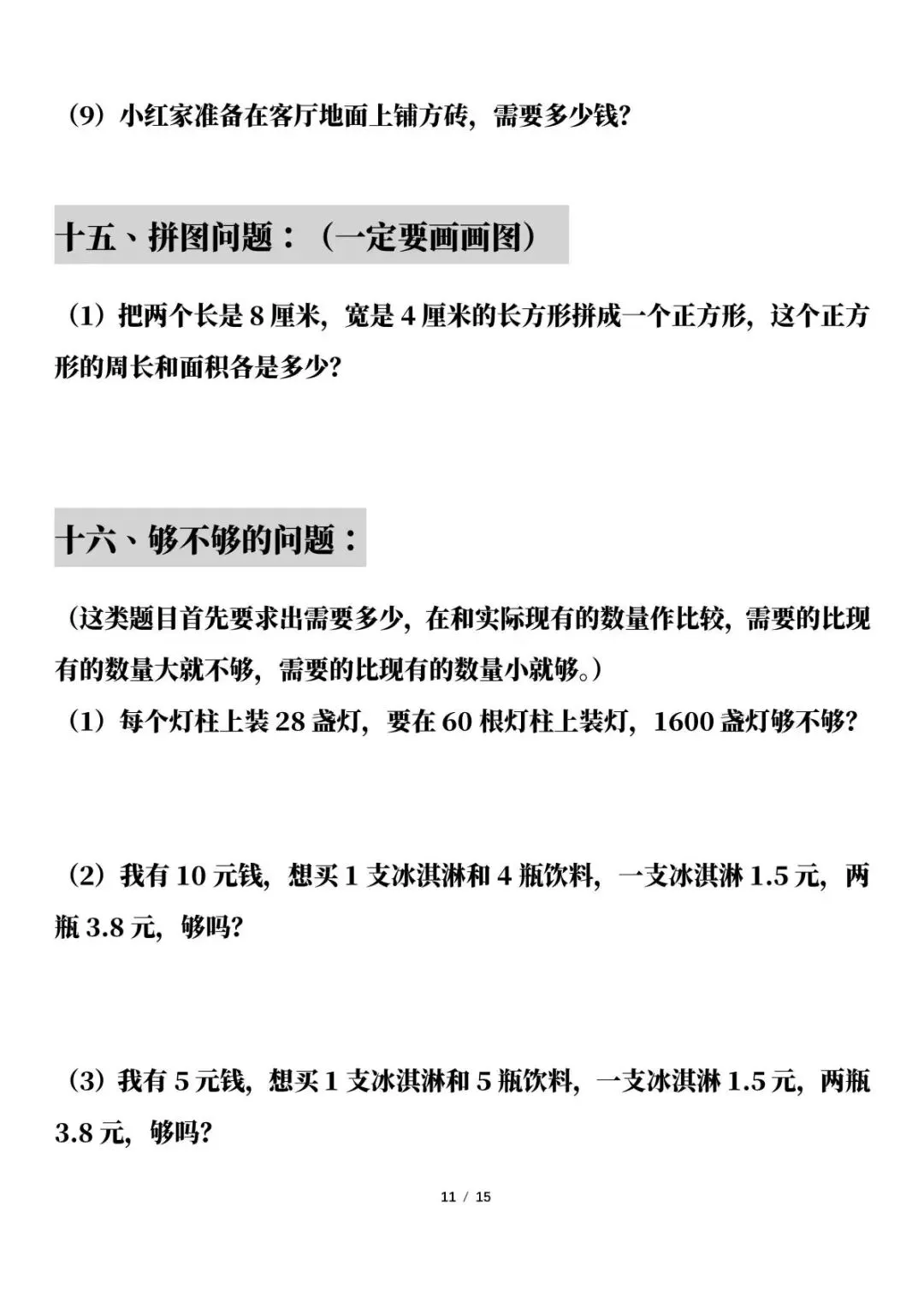 今天分享的是三年级(下)数学 经典必考十八类应用题 可下载打印(拉至文末,点击“阅读原文”,可直接下载完整可打印版。)