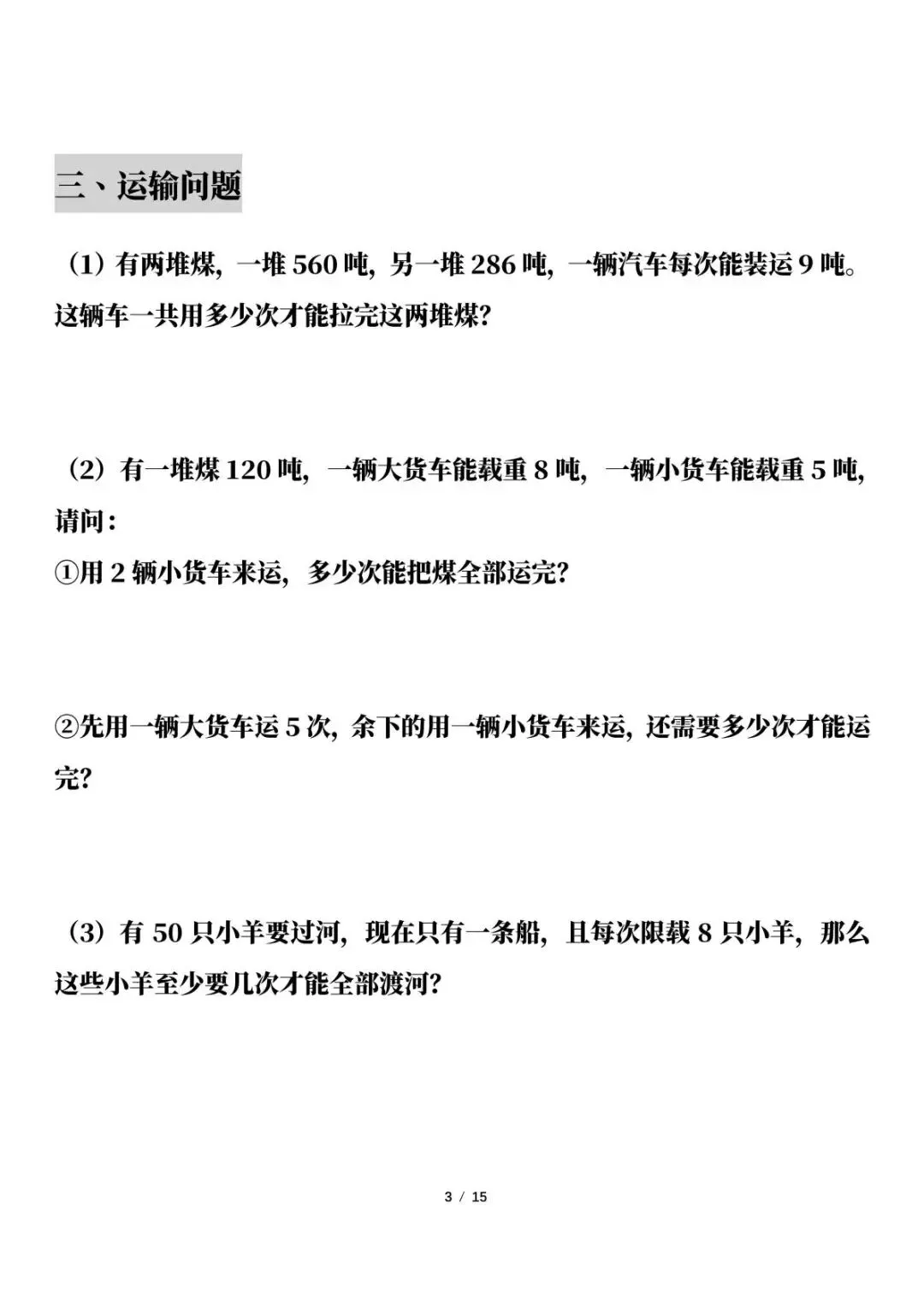 三年级(下)数学 经典必考十八类应用题 可下载打印